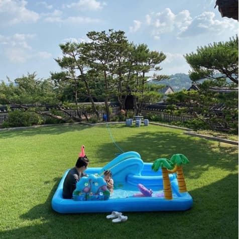 넓은 마당에서 아이들과 강아지가 뛰어놀기도 하며, 아이들의 미니텃밭 가꾸기, 남편과 아이들이 물놀이를 즐기기도 합니다.