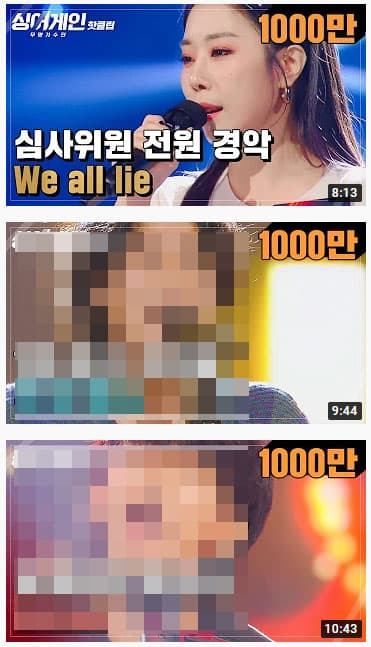 싱어게인 유튜브 천만 조회수를 돌파한 동영상은 단 3개입니다.